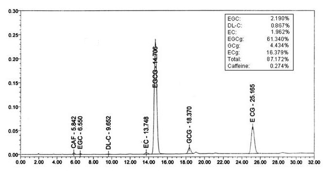 Las catequinas son los componentes principales de los polifenoles del té, que consisten en EGC, DL-C, EC, EGCG, GCG y ECG. Estos compuestos exhiben propiedades farmacológicas que incluyen efectos antioxidantes, antibióticos, antivirales, antitumorales y antimutación, al tiempo que mejoran la función inmunológica y reducen los lípidos y esteroides en la sangre.