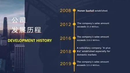 Hunan Sunfull Bio-tech Co., Ltd. es una empresa de alta tecnología con más de 20 años de experiencia profesional especializada en I+D, producción y venta de extractos de plantas naturales. La empresa cuenta con las certificaciones ISO9001, ISO22000/HACCP, KOSHER y HALAL, y ha recibido el Premio Nacional de Grado II y los Premios Provinciales de Primer Premio. Sus marcas comerciales conocidas incluyen Sunfullbio, Sunepica™ y Teavital™.